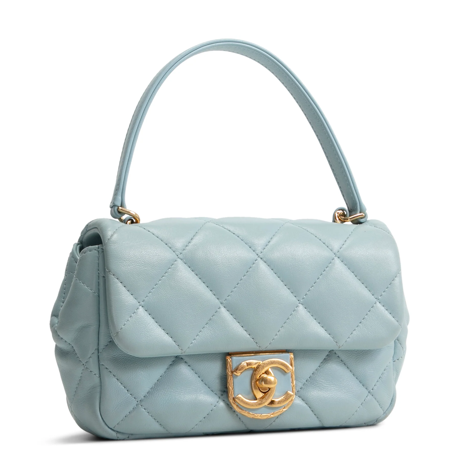 CHANEL Lambskin Quilted Rectangular Mini Flap - Light Blue