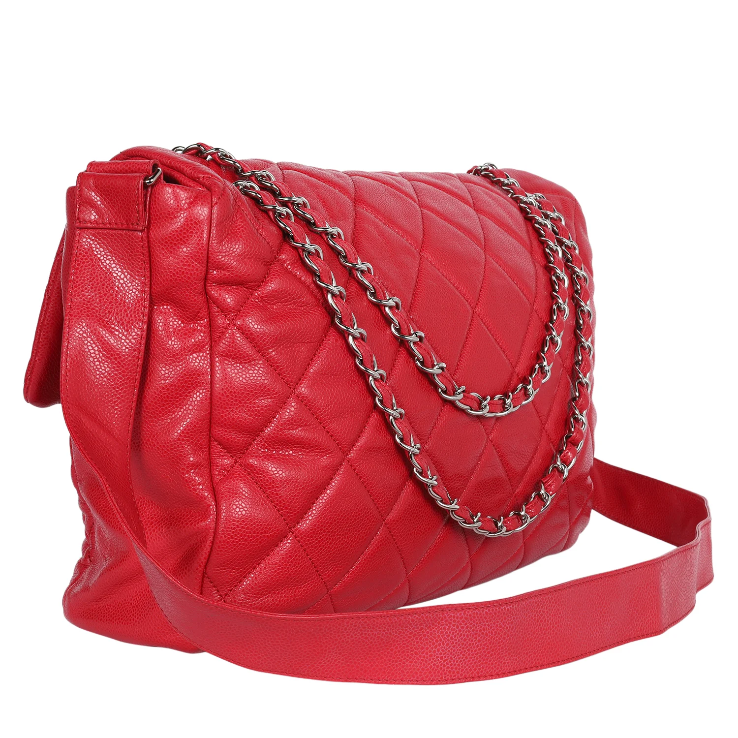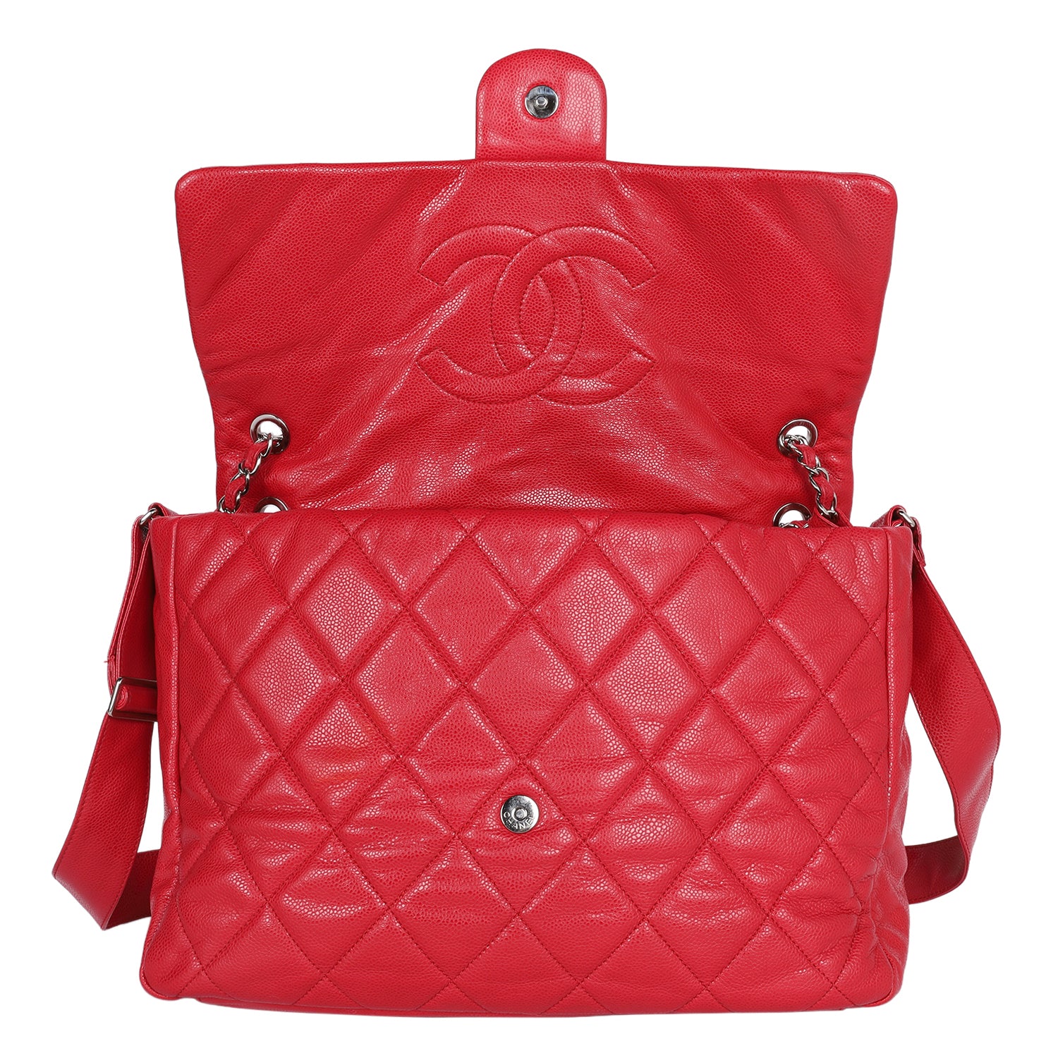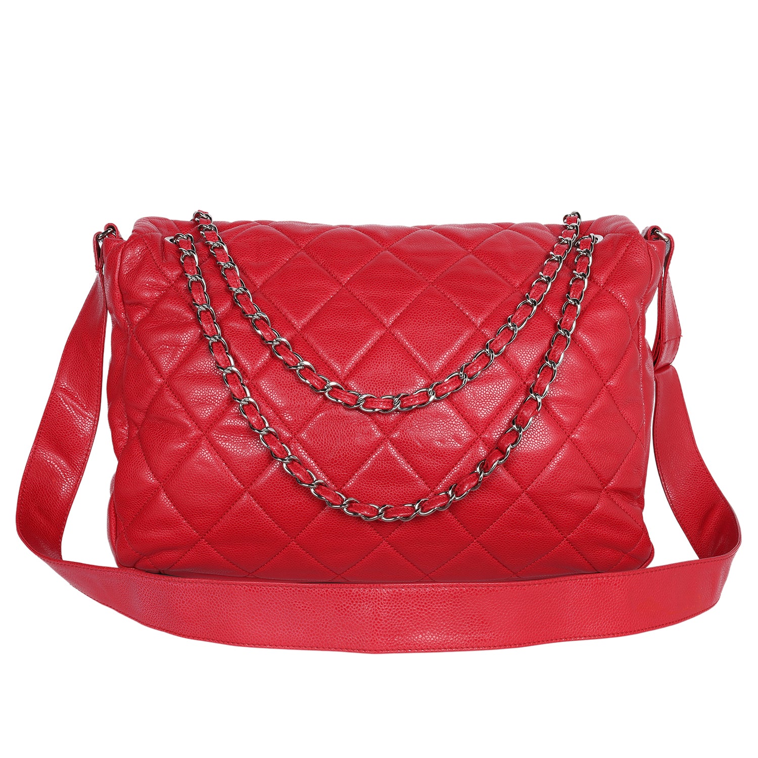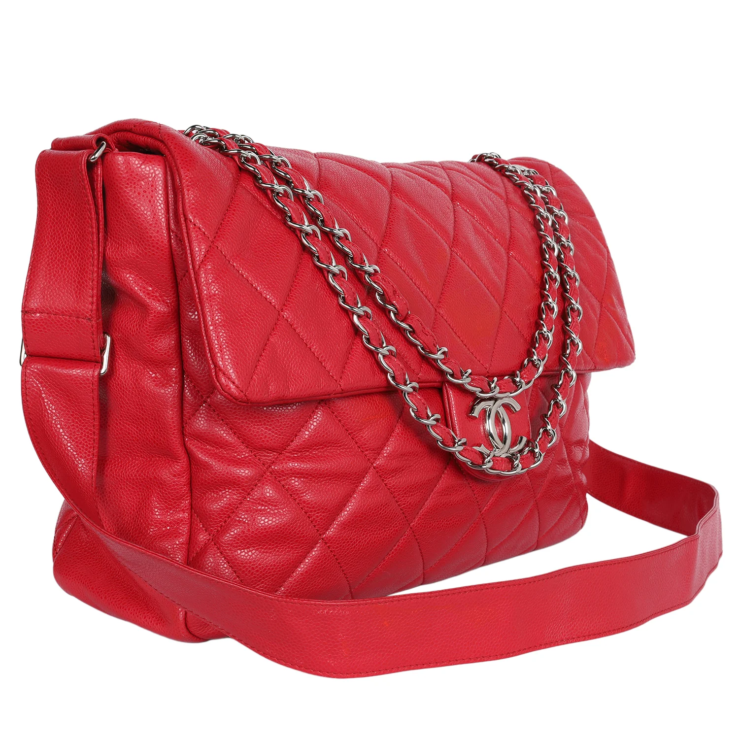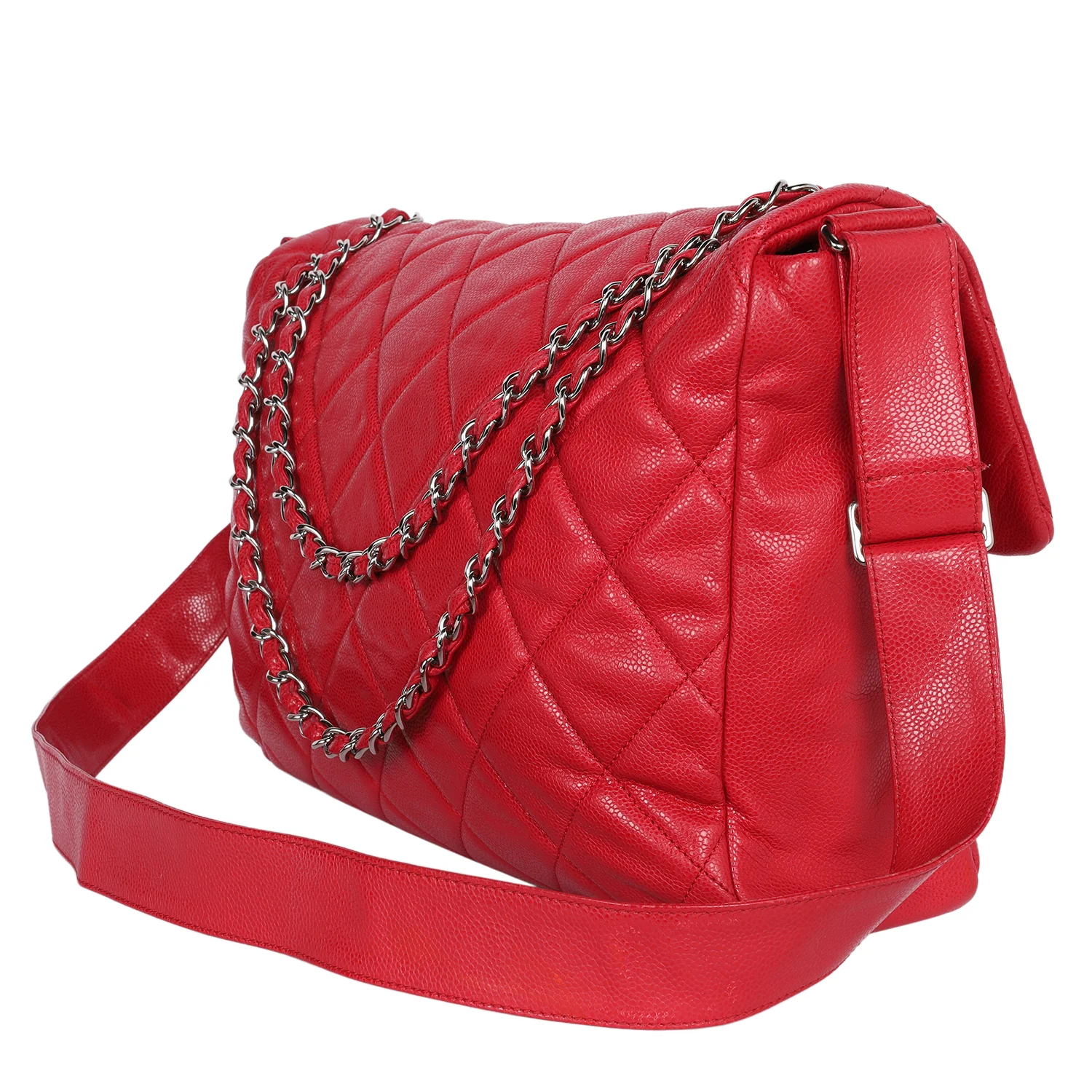 Quilted Caviar Leather XL Classic Flap Messenger Bag Red
